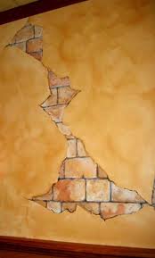 Faux painting techniques are a perfect solution when seeking to hide imperfect walls and surfaces. There are many options such as; faux marble, Venetian plastering, paints and glazes, color washing, aging and distressing, wood graining, ragging and stippling, dragging, sponge painting, spatter painting, terracotta, liming, and oak graining. Easy to follow faux techniques instructions can be found online at websites like True Value. With some imagination and research, one can find even more ideas like using wood glue mixed with paint to achieve a weathered look or methods for creating a crackle finish.