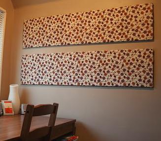 - Fabric can be framed, to match bedding (such as a bold sheet pattern), placed in a grouping behind the bed in place of a headboard. The fabric can be changed as you change your bedding choices.