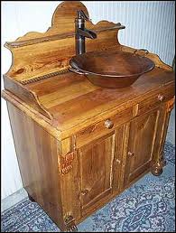 A new vanity can be made from an old chest. If it is 32 inches to 36 inches tall cut a hole for a sink in the top and have a stone countertop put in with the sink. If it is less than 32 inches high you can use a vessel sink.