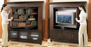 • There are now mechanisms that will swing the TV down from a trap door in the ceiling and flat screens are so thin that they can be sunk into a shallow wall to be made flush with the surface.