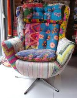 - Take old clothes and repurposethem to make a patchwork yardage of fabric to use to reupholster a worn out chair or sofa.