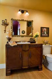 - Repurposing is hot; take an old dresser, paint it, cut out for plumbing, and add a vessel sink for your bathroom vanity