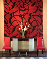 - There are some cool contemporary patterned area rugs that can be hung as a backdrop behind a simple piece of furniture.