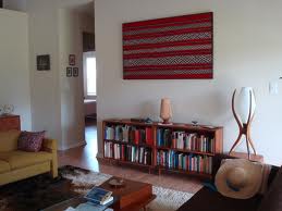 - Woven Native American or Mexican wool rugs make lovely wall décor in a relaxed atmosphere.