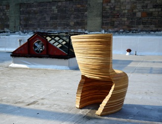 • Scrap chairs are a product of the first adventure of graypants. “Scrap chairs are the pure result of pillaging trash to create elegant, useful products. The chair of layered plywood scraps follows earlier versions of cardboard and newspaper.”