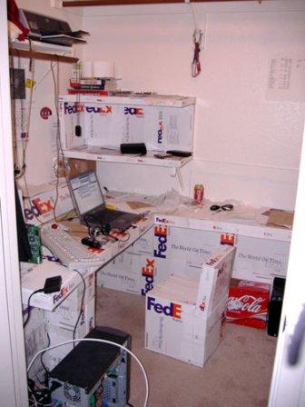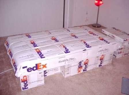 Inspired by a friend’s homemade desk, Jose took on the task to repurpose FedEx shipping boxes into an apartment full of furnishings.