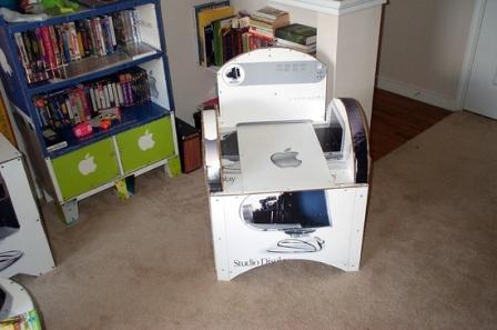 Inspired by his Disney trip, Dusing took home the Mac boxes and started designing and building furniture out of them to furniture his little abode.