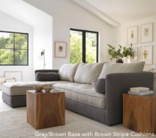 - Upholstered pieces are made using recycled fibers, down pillow fill, and certified kiln-dried hardwood frames. The eco-friendly sectional is a “all-green, all-purpose rare find. The manufacturer uses only certified sustainable wood frames and water-based wood finishes, recycled fiber filling in the pillows, and soy-based filling in the cushions. Upholstered in 100% linen ticking with tufted buttons.”