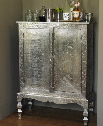 - Find pieces such as the unique Etched Silver Armoire made from reclaimed wood doors with hand-etched sheets of German silver for the facing.