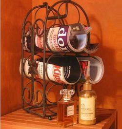 Many people have a wine rack stored away in the basement waiting for a wine collection that has yet come to fruition. While waiting for the lovely wines to arrive repurpose the wine racks to use for the existing décor.