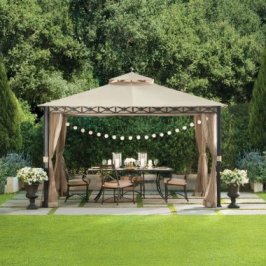 - They create the feeling of a room. These are not your old fashioned gazebos. They can be purchased at a very reasonable price and are easy to assemble. Gazebos are nice because they provide shade as well as screening to keep the bugs out. You can make it your own by adding swags of drapery. Be sure to use fabric that is made for the outside elements. This way they won’t be damaged by the rain and sun. You will want to take the gazebo down after the season to store for next year.
