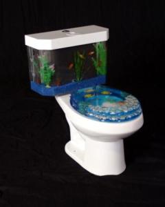 - Check out Aqua One Technologies Fish’n Flush: The Fish ‘n Flush Toilet Tank Aquarium is “The Whimsical, Nautical, Wonderland for your bathroom.” The perimeter around the center toilet tank is a clear aquarium with fish that will not be flushed down the drain. They come in different motifs and colors with coordinating toilet seats.