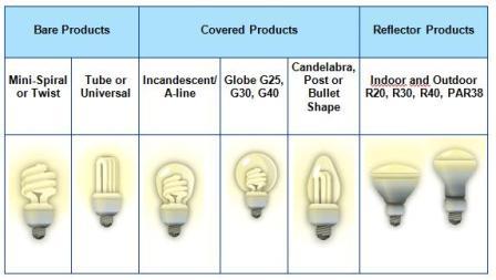 CFL light bulbs come in many shapes and sizes to fit all light fixtures