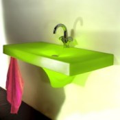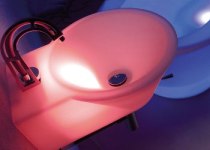 • A truly unique wall hung sink fixture that will light up the entire bathroom. Meltdown is made of 100% recyclable PolyEthylene. “A special “TEFLON” treatment to the tooling made it possible to obtain an important improvement to its superficial quality, gathering a special Teflon treatment provides a “shining effect with a dirt-free surface”.