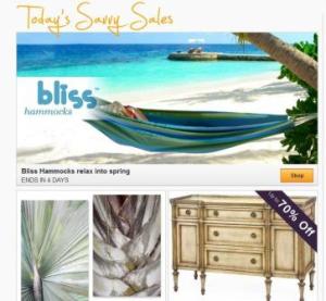 - Check out Homesav for their daily event sales with the designer finds and inspired picks at up to 80 percent off the retail price.