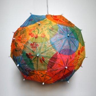 - Cocktail Umbrella Pendant Light; “created from Cocktail Umbrellas and a paper lantern, and is a fun and festive way to brighten up any backyard barbecue or summer party!”