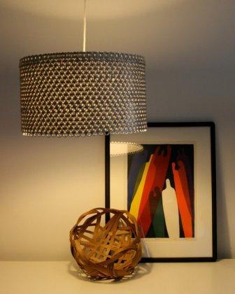 - Small Floral Drum Shade – Hanging Pendant Lamp; “This fun little lamp shade is perfect as a small pendant or as a shade for a table lamp. It is created from a variety of small circles cut from brightly colored floral magazines.”