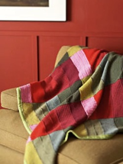 - Make a patchwork blanket; using cut squares from sweaters, whip stitch the squares together for a cozy blanket.