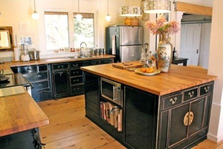 Take furniture from other rooms to repurpose as kitchen cabinetry. Scour yard sales and thrift shops for special finds.