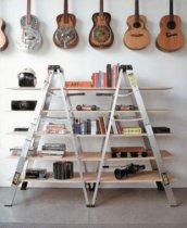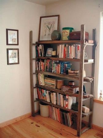 - Open up an old ladder. Use the existing steps as supports for planks to fit across to create a fun bookcase.
