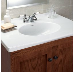 Looking for a quick replacement sink to update an aged vanity? The classic self-rimming lavatory is a perfect choice. With their low cost and many color finishes, they easily blend with any décor and are great for those remodeling on a tight budget. The old reliable self-rimming, overmount sink works well when the need is to simply replace an existing, worn out, old lav. An existing vanity will be livened up with a new self-rimming model, plus a new faucet set.