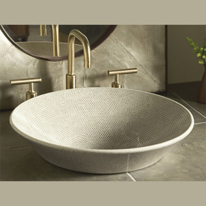 Bring a creative touch into the bathroom by purchasing a sink that is a piece of art in itself. Artisans specially craft vessel sinks out of various mediums such as hand-blown glass infused with patterns of color, or hand carved from polished stone giving the appearance of an artful accessory sitting on the vanity top. These vessels of art can be costly, but worth it with the unique statement of a fountain-like artistic sculpture that they make upon anyone entering the bathroom. Have fun discovering the many types of contemporary vessel sinks, such as contemporary sleek geometric sinks, and sinks that actually look like a large rock has been placed on the countertop.