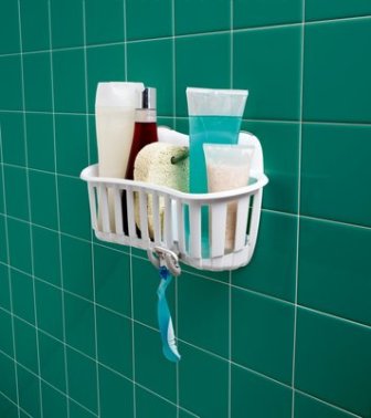 - “Equipped with adhesive strips specifically for the hot, wet and humid bathroom environment …The shower caddy and soap dish can be mounted in bathroom cabinets and closets for organizing bathroom essentials or in the shower to keep items off the floor. Hold up to 7.5 pounds.”
