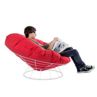 - It surrounds you in a nest of comfort and security; “a relaxing chair with a white support frame designed by Sitting Bull for indoor and outdoor use”.
