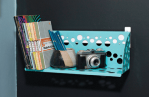 “MOBOS® shelves are ideal for storing books and other items you want to show off. A punched circle design is contemporary and fun. Hooks onto MOBOS® Bars.”