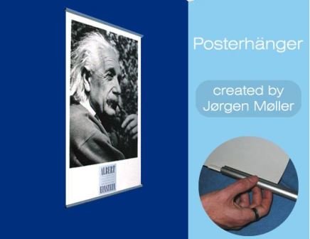 - Posterhanger, created by Jorgen Moller easily attaches to the top and bottom of your artwork, creating an elegant finished look. The hanger is made of aluminumin a choice of a silver or black finish, and comes in a huge range of sizes from 12 inches up to 72 inches wide. It hangs with one small nail for virtually no damage to walls.