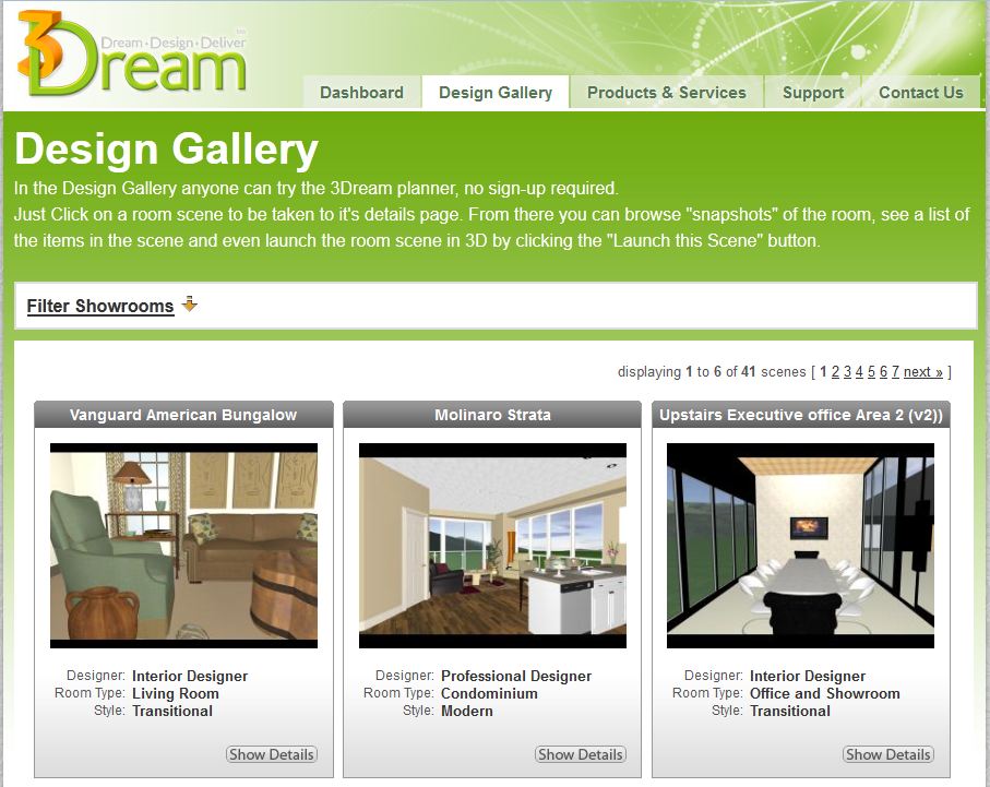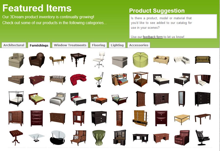 “Create stunning room designs with 3Dream, our 3D online design tool. Use realistic 3D models of manufacturer’s real world products to drag-and-drop furnishings, paint and accessories into your space – then take and share snapshots of your design. For beginner to pro, it’s just that easy.”