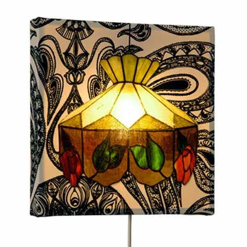 - No room for a lamp then add a floor lamp to the wall with a Standard Lamp Glo-Canvas. “A vintage standard lamp image, on a patterned background, digitally printed onto cotton canvas and stretched over a wooden frame.” The canvas is “illuminated from the centre of the lamp shade”.