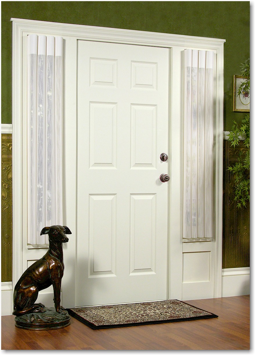 Hunter Douglas “Luminette® Privacy Sheers are ideal for sidelight and accent window applications. The perfect solution for those narrow, hard-to-cover windows.”