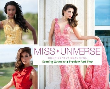 Relish spying the second in a series of sneak peeks at the evening gowns that the beautiful Miss Universe 2014 contestants will be strolling the runway in “The
