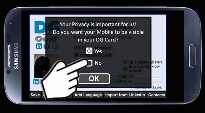 DG Card is a free app that is designed to allow one to create digital business cards with a personalized design exactly as one would do for a paper card.